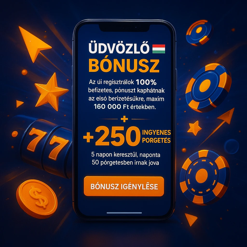 Az új regisztrálók 100% befizetési bónuszt kaphatnak az első befizetésükre, maximum 160 000 Ft értékben. Ez az ajánlat sportfogadásokra és kaszinójátékokra egyaránt felhasználható. Ezenkívül az ajánlat 250 ingyenes pörgetést is tartalmazhat, melyeket 5 napon keresztül, naponta 50 pörgetésben írnak jóvá. A bónusz aktiválásához a regisztrációt követő 7 napon belül legalább 5 000 Ft értékű befizetés szükséges.